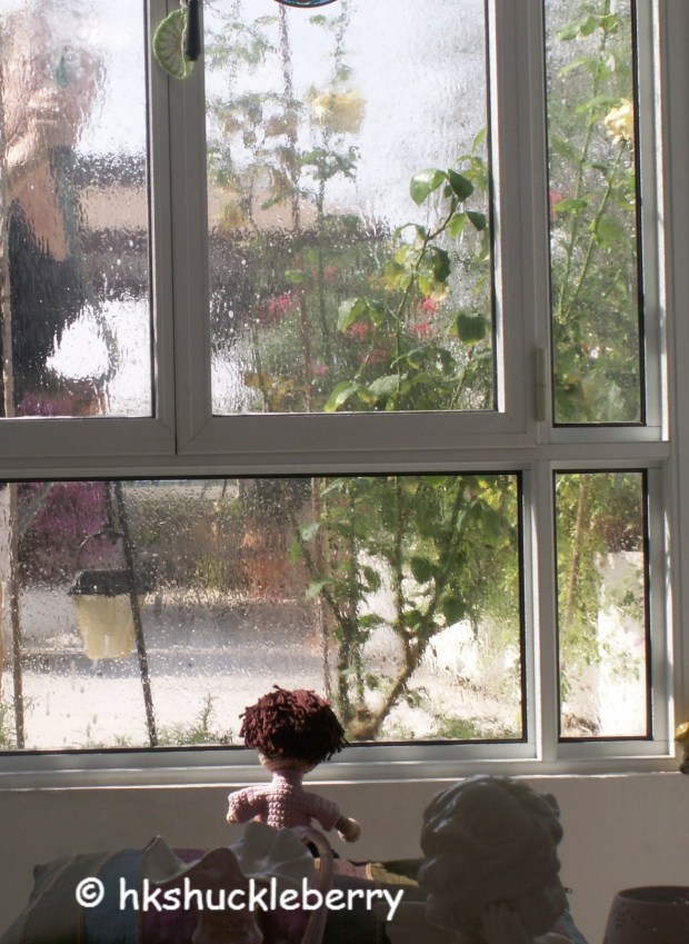 What is that noise? What is going on? Nooo!!! I don’t believe this. There is Heike with the hose and what is she doing? Cleaning the windows?