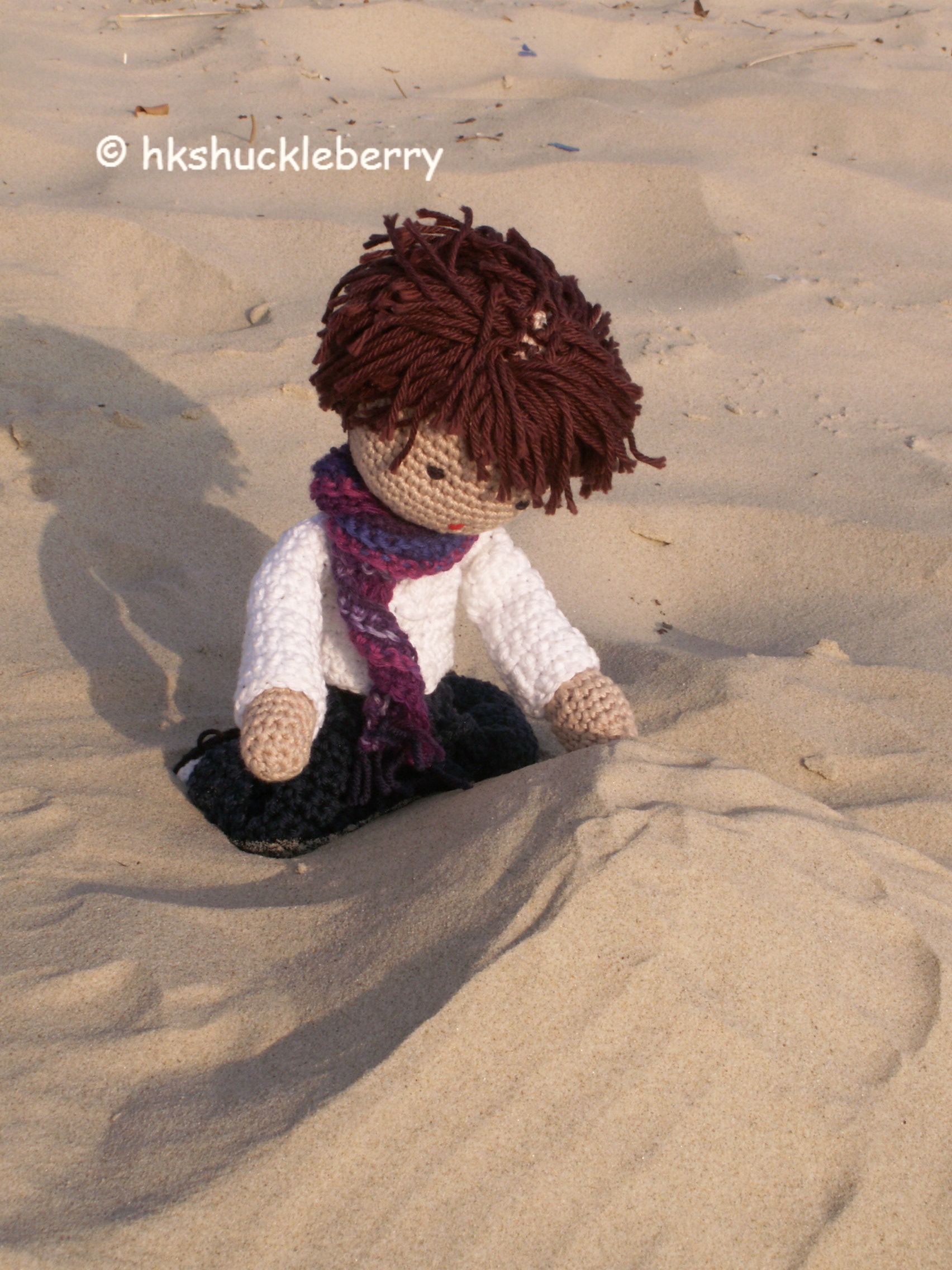 My little crochet guy played in the sand and I sat next to him enjoying the not so mild winter afternoon until we decided to go home. We walked by a couple of beach restaurants and Pomi tried the various chairs.