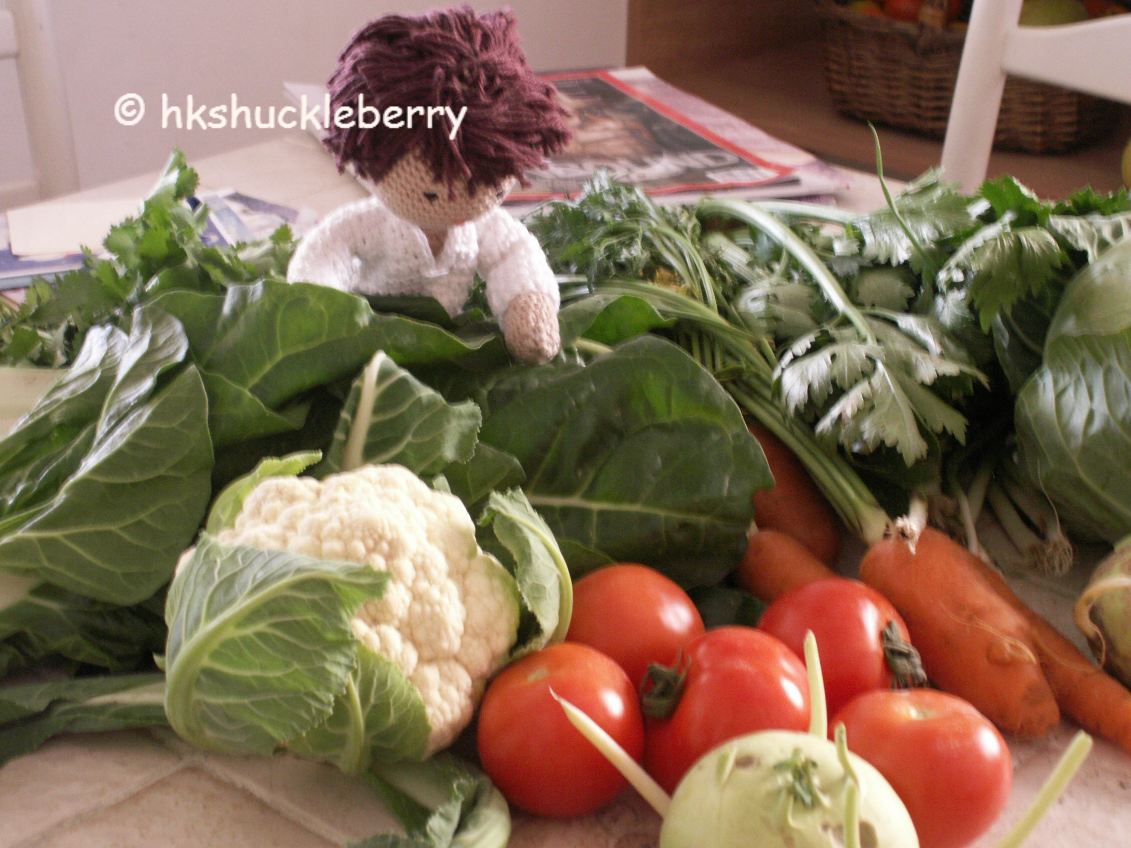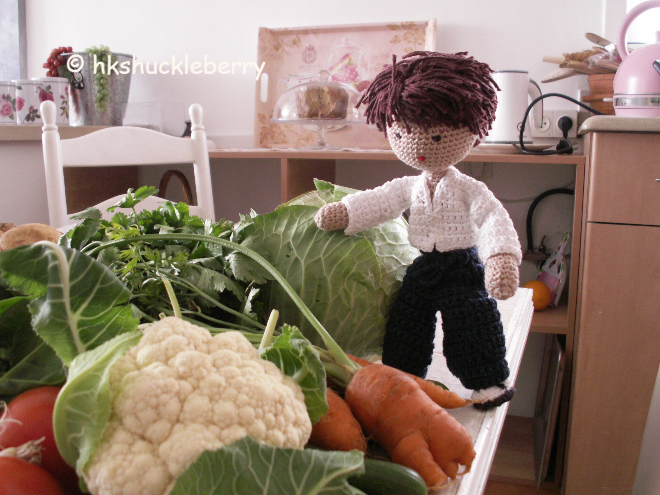 ” Sleek tomatoes.” Pomi smiled as he looked at the standard vegetables. ” Flawless cucumbers. And a picture perfect but very dirty cabbage. Do you get a discount for accepting vegetables with lots of sand on them? ” My crochet doll chuckled.