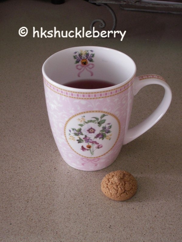 He comes back out with my favorite tea and a bag of amaretti,  puts a tea bag in my favorite mug, adds hot water and smiles: