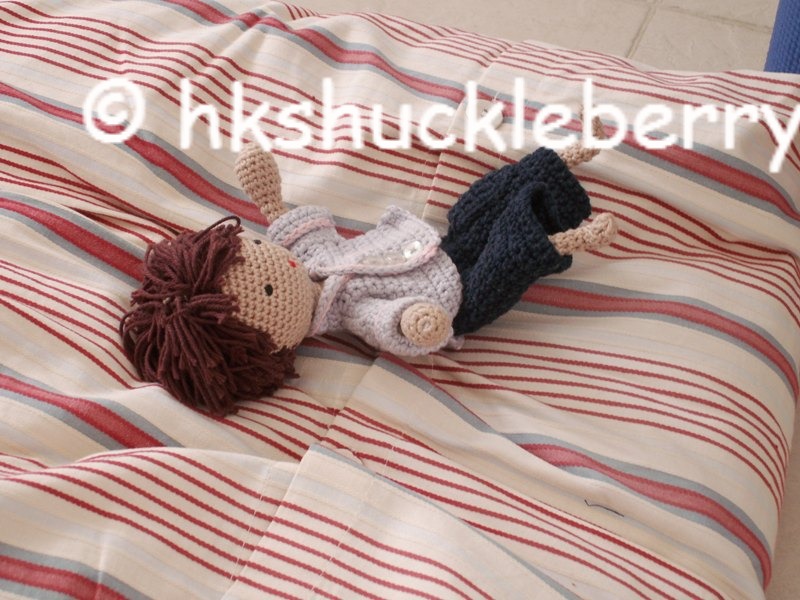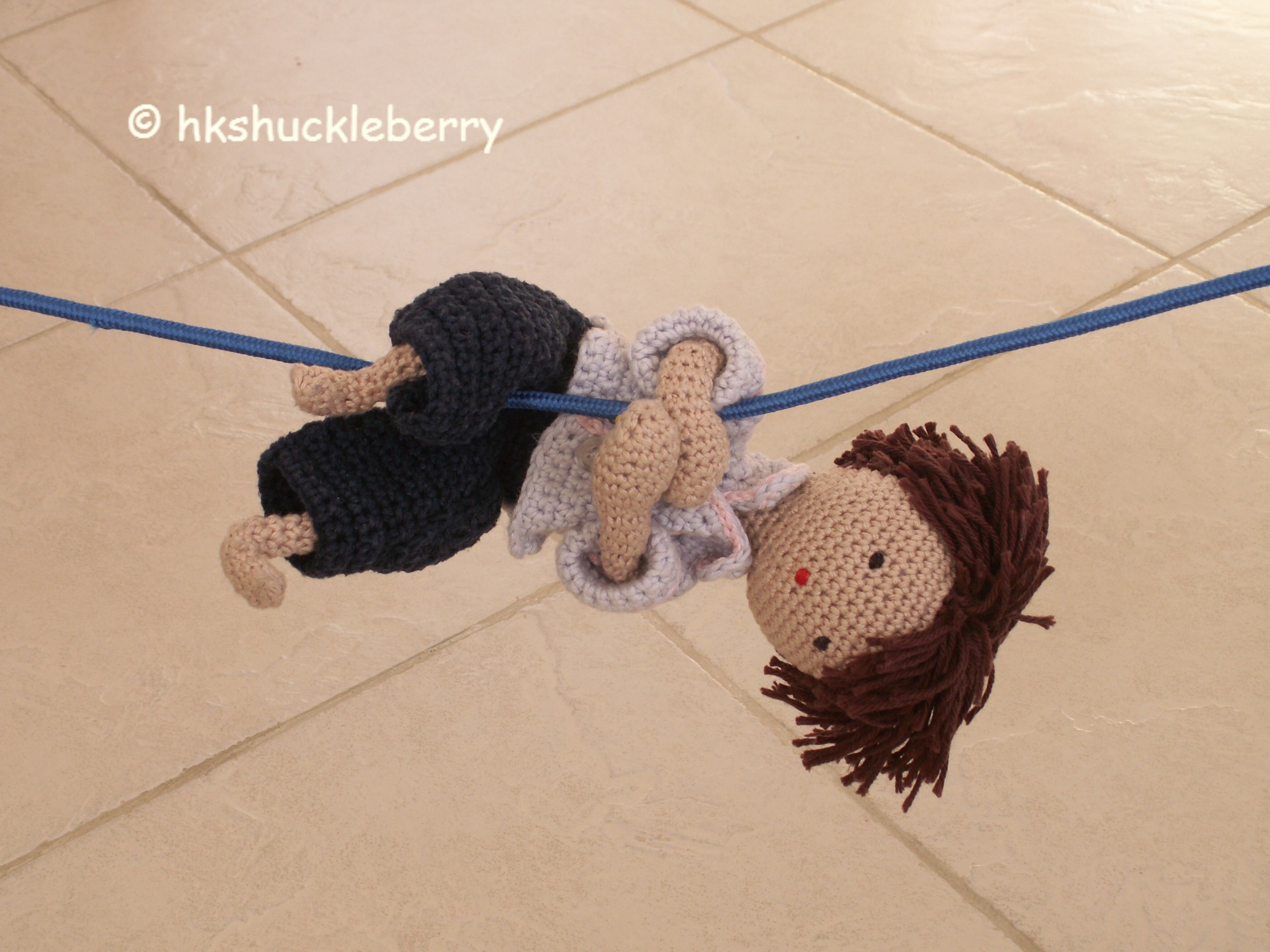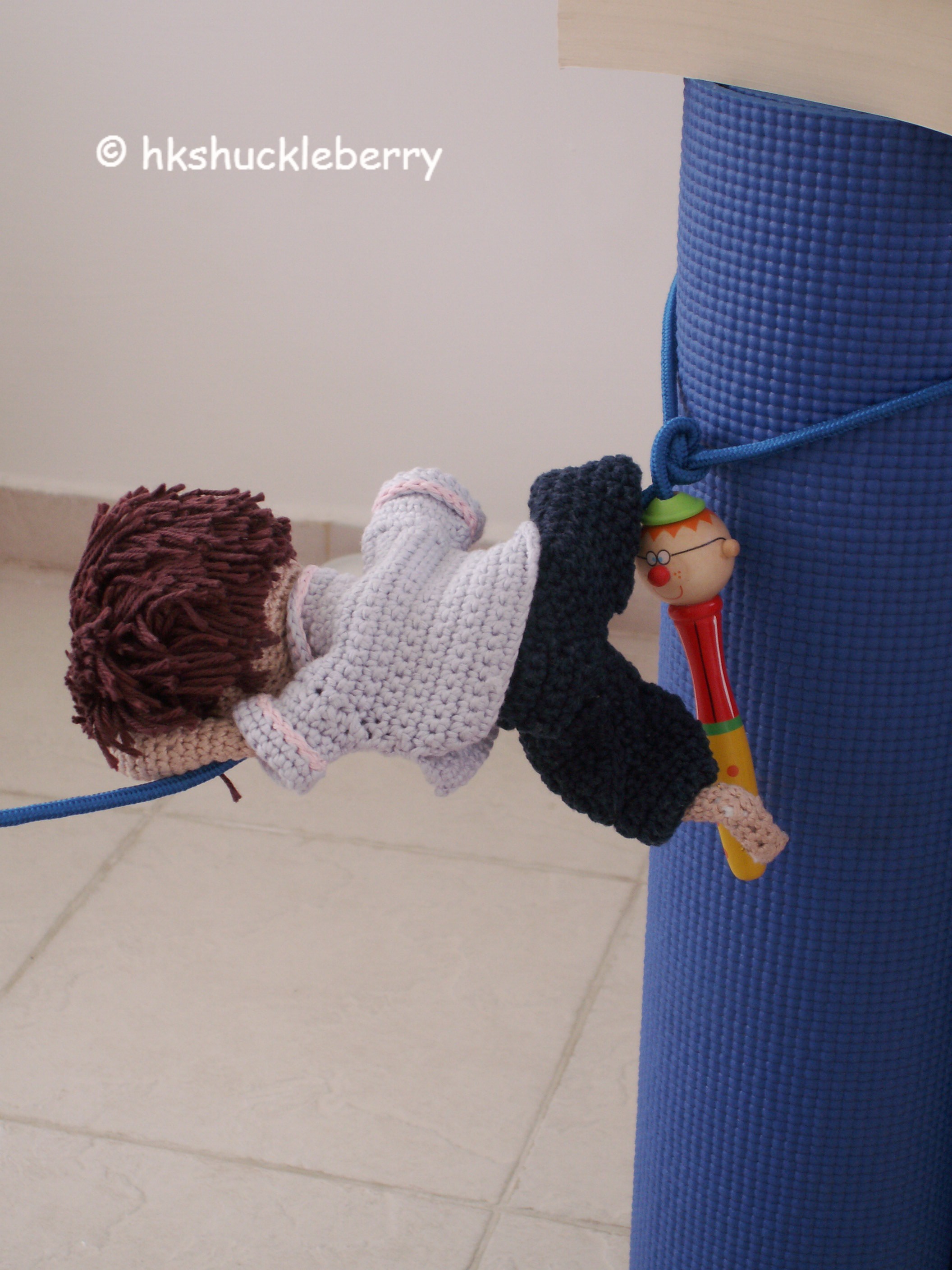 ” How do you know all this?” I ask my little crochet guy who is now standing on the rope. One hand still holding on to a book he is struggling not to loose his balance.