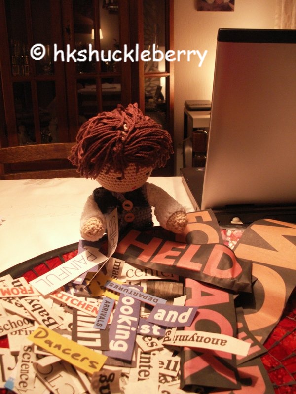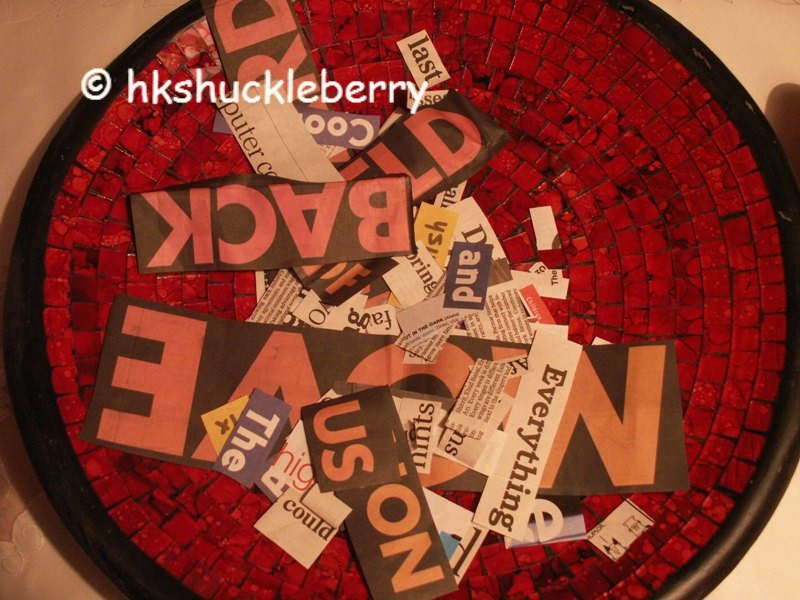 When he decided  that there were enough words he started to dig through the clippings and puzzled them together.