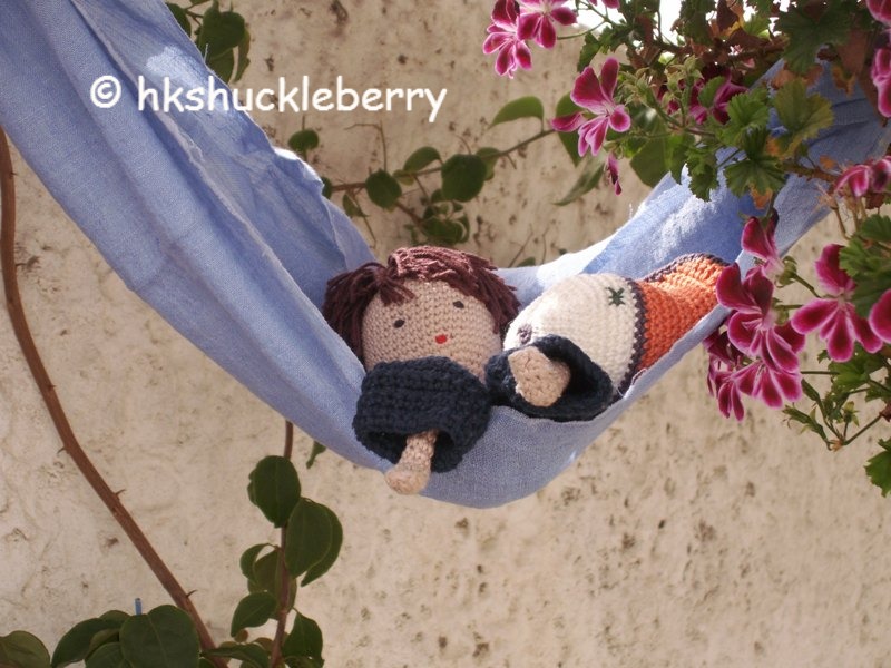 The little crochet guy knows how to live!! A hammock, a canopy of flowers, swaying gently in the shade — just perfect. You’ve evoked the heat and a sense of place so skillfully with only a brief dialogue and some wonderful photos. 🙂