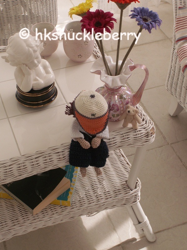 That is why I was surprised when I found him sitting on my coffee table the other day. He had pulled his cap over his face a sure sign that he was unhappy.