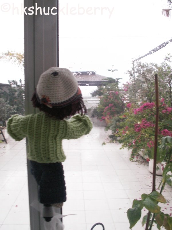 Pomi is still not sure about the green cardigan. I shall have to crochet another one I suppose.