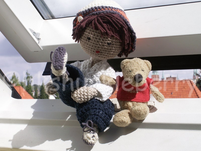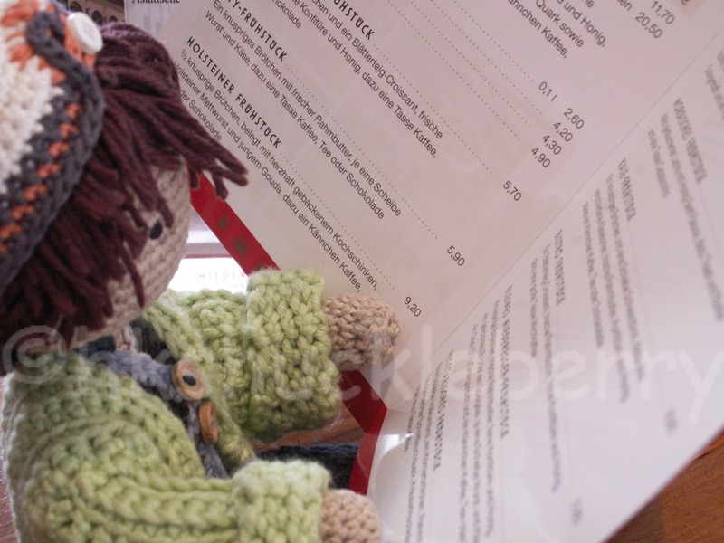 My little crochet guy chose the continental breakfast: bread roll, croissant, two kinds of jam, butter, honey and one cup of perfect coffee.