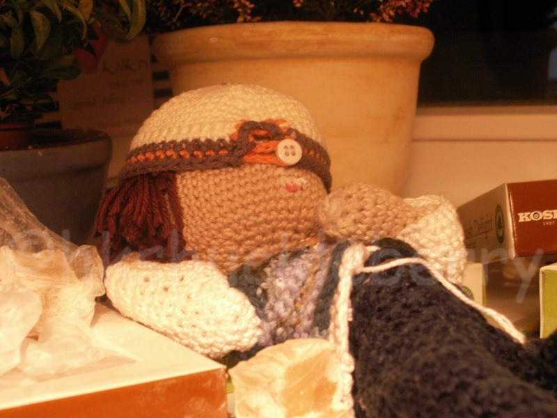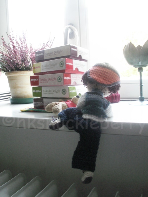 “I am sorry, Pomi, I ran into our neighbour”. I explained as I walked into the apartment, but my little crochet guy did not answer, he was fast asleep. It looked like he had enjoyed the lokum.