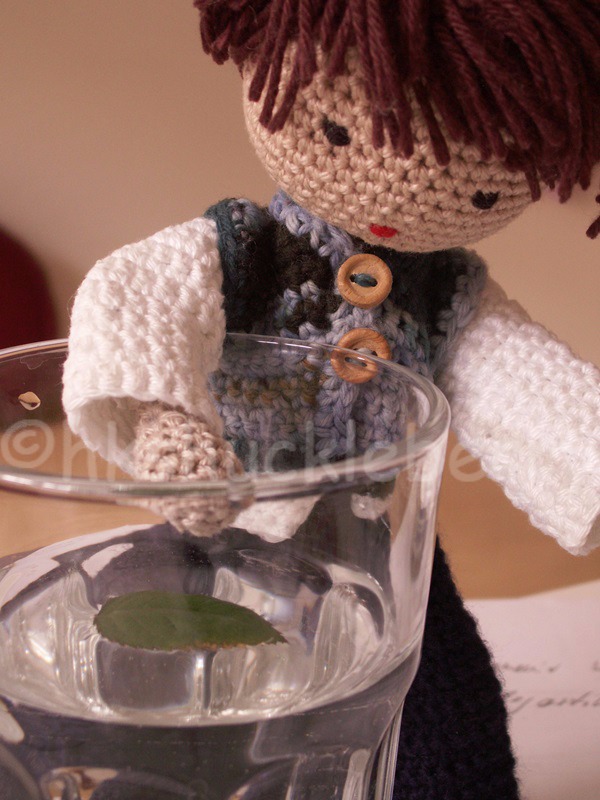 :-). The task was: how does one fish a leaf out of a glass of water without getting one’s hands wet ;-).